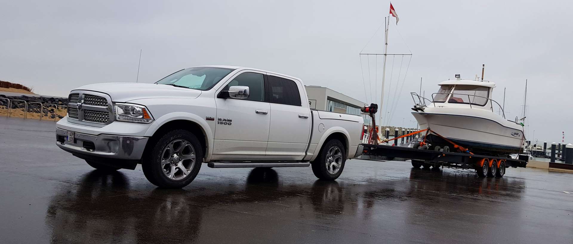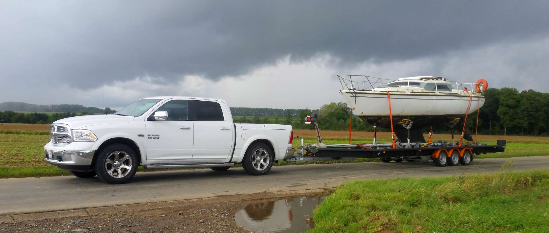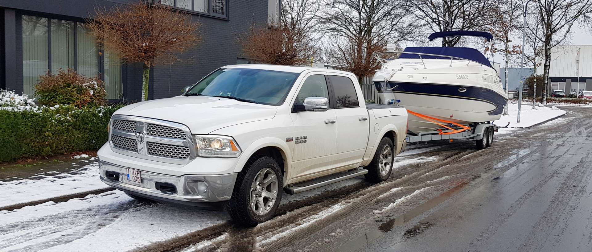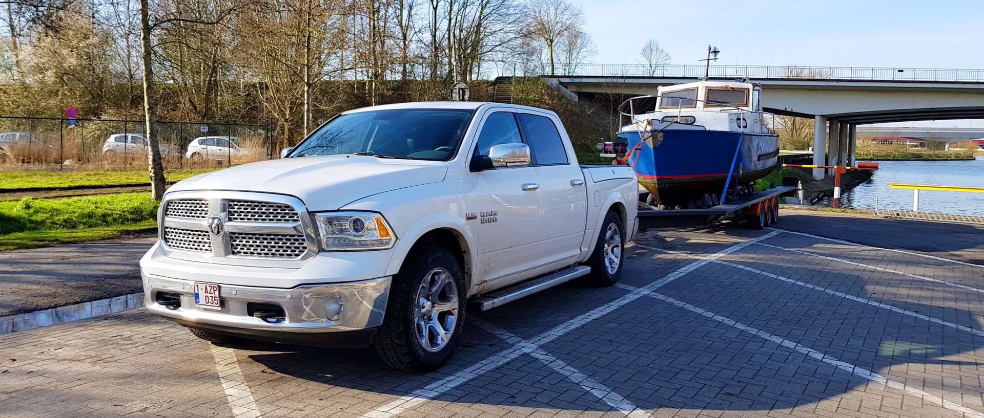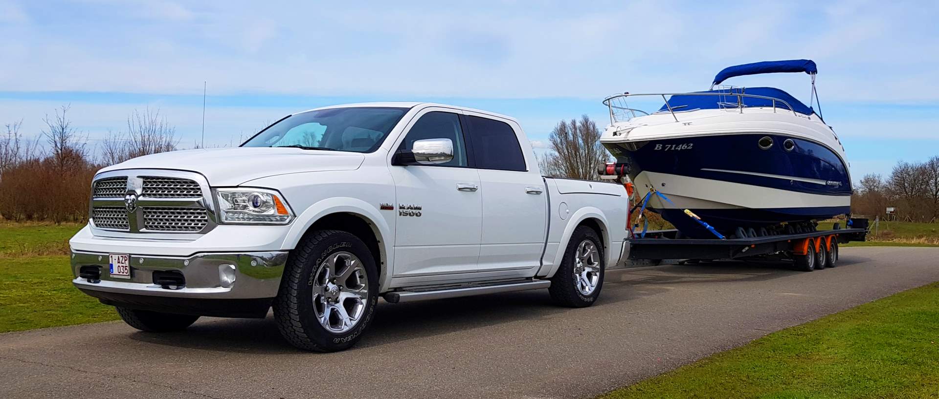 Iedereen die goederen, hetzij boten, voor derden vervoerd over de weg moet beschikken over een vervoervergunning. Of dit transport nu per vrachtwagen, bestelwagen of 4x4 gebeurd maakt niet uit. Een transporteur kan enkel een vervoervergunning bekomen als hij beschikt over een vakbekwaamheid transport en een betrouwbaar persoon is. Per voertuig dat op de weg gebracht wordt moet de transporteur een borgstelling plaatsen bij de overheid van ten minste 5000€. Onze Dodge Ram beschikt uiteraard over een vervoervergunning. U kan dit zelf checken op de website van de Federale Overheidsdienst Mobiliteit.